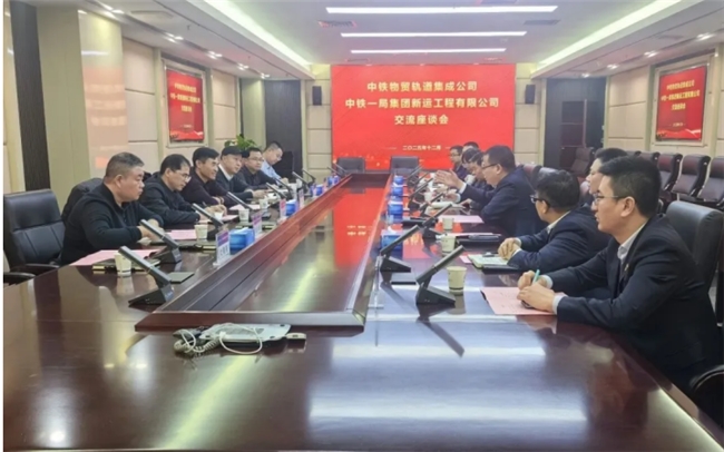 12 月 22 日,轨道分公司与中铁一局新运公司开展座谈交流,轨道分公司党委书记申国锋,党委副书记、总经理陈彦鹏,中铁一局新运公司党委书记、执行董事吴平出席会议,双方财务、物资、经营等分管领导及相关部门负责人共同参会。