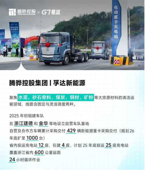 作为大宗货物绿色供应链的先行者,腾骅控股集团始终致力于通过数字化为行业电动化转型探路。2025年,集团与物联网技术伙伴G7易流达成合作,双方聚焦新能源重卡的核心挑战——运输安全,共同研发并落地了一套完整的数字化管理方案,旨在为行业输出可复制的转型方法论。
