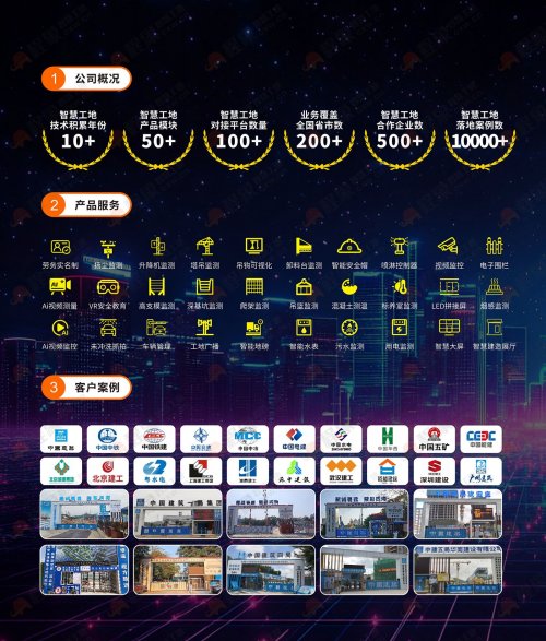 程象科技在智慧工地领域深耕多年,技术积累超过10年,业务覆盖全国200多个省市,服务合作企业超500家,智慧工地落地案例逾10000个,产品模块达50余种,已对接各类平台超100个。其产品线涵盖劳务实名制、环境监测、大型设备监控、AI视频分析、VR安全教育等全面智慧工地解决方案。