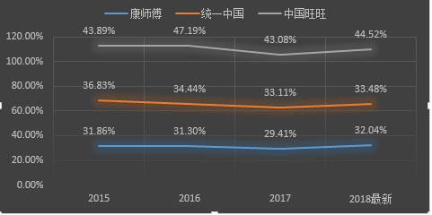 11月27日,康师傅控股(下称“康师傅”)大幅低开,跌幅达17.74%,收盘价10.48元/股。一举跌出上市以来最大跌幅,市值一天蒸发111.8亿人民币。当日股价的大幅下跌与前一晚,康师傅公布2018年的三季报业绩不达预期,不无关系。 这家占据了国内方便面、饮料近一半市场份额的食品饮料巨头,在2014年开始出现营收与利润的持续下跌,2016年更是被踢除恒生指数,多家投行下调投资评级。此后,康师傅一度通过产品升级、优化组合、提价等方式回暖业绩。 然而最新的三季报却出现两年来季度营收的首次下滑,第三季度营收下滑4.19%,达188.63亿元,主要是新业务增速放缓,在传统的饮品市场旺季,饮料产品销售出现下滑;毛利率从33.37%下滑到32.5%;净利润较去年同期微增1.19%,达19.06亿元。 这是否预示着康师傅业绩又将出现转折?这家市值仍高居同行第一的食品饮料大佬是否廉颇老矣,创新能力受限?又或者消费升级和外卖市场的发展对其冲击过甚? 下面,我们主要结合财报讲一讲康师傅的故事。 一、业绩上:三季报新产品增幅放缓 饮料销售额下滑 1992年,康师傅推出了第一袋方便面,营业额从2700万元增至到1995年的24.5亿元,1996年康师傅在香港主板上市,业绩一路高速增长,2013年营业额飙升至671.34亿元。康师傅的主要产品是方便面、饮品,也持续占据国内同品类第一及第二的市场份额。 转折点就发生在2013年。这一年开始,康师傅的业绩一路下跌,2016年营业额跌至585.44亿元,2017年小幅回升至593.61亿元;净利润直接腰斩,从2013年的24.91亿元下滑2016年12.27亿元,2017年同样出现回升至18.19亿元。 相比较而言,公司的营收下滑及增长相对平稳,而净利润的变动速度远快于营收的变动速度。2015、2016、2017年营收分别变动了-11.35%、-7.95%、6.18%,而净利润则分别变动了-35.99%、-31%、56.59%。 如果说,2013年开始的下跌,是市场竞争的爆发点——康师傅和统一方便面引发价格战,买面附赠火腿肠。那么2017年业绩的回升,与康师傅进行的战略调整不无关系,产品执行多价格带策略,巩固大众市场的同时,服务中产阶级,通过轻资产等方式节约支出等。 ![]() 到了今年第三季度,康师傅的业绩再次出现波动,两年来季度营收首次下滑,主要受饮品销售下滑及新产品增速下滑影响。 今年前三季度,受提价影响,康师傅的营收498.59亿元人民币,在业绩小幅增长3.32%的情况下,净利润实现较大幅度增长,同比增幅22.82%。其中,饮品销售收入308.97亿元人民币,占营收比重61.97%,方便面销售收入178.86亿元人民币,占营收比重的35.87%,方便食品及其他业务占比很小,两项销售10.76亿元,合计占比2.16%。从产品销售构成看,饮品收入是公司销售公司销售收入的最主要来源,其次是方便面。 ![]() 不过,值得注意的是,2018年第三季度,除了方便面业务微增0.66%以外,饮品、方便食品均出现销售下滑,尤其是饮品业务在传统销售旺季,下滑6.52%;方便食品下滑16.45%。整体来看,今年前三季度,饮品的销售额增速2.63%,较去年同期增幅11.13%,增速下滑明显。 ![]() ![]() 具体看方便面业务,传统的中价袋面和干脆面及其他销售额同比在大幅下滑,这与市场预期相符。而容器面和高价袋面在第三季度及首三季的变化幅度来看,销售增速同样也在缩减。其中高价袋面去年前三季度销售增速达21%,目前速度已下滑至10.26%,这部分是康师傅重点布局的新业务及研发的新产品,增速下降将直接影响后期业绩的发展。 ![]() ![]() 饮品产品方面,康师傅同样面临增速下滑的窘境。今年第三季度,除了碳酸饮料及其他,茶、水、果汁均出现大幅度的销售额下滑。整体来看,今年前三季度,水和果汁的销售额均已呈下滑态势,茶的销售额增速同样下滑,唯独碳酸饮料仍处于较大增幅增长。 ![]() ![]() 二、业务上:新品研发生产难造爆款单品 今年前三季度,康师傅的毛利率出现较大提升,达32.04%,较去年同期提升了1.55个百分点。其中,饮品业务的毛利率在2013年至2015年一直稳中有升,2016年、2017年出现下滑,2017年毛利率下跌3.14个百分点至29.82%,而今年前三季度又出现大幅提升至34.13%。方便面业务方面,毛利率相对稳定,2016年和2017年一度维持在28.79%,今年前三季度毛利率提升至32.05%。 ![]() 这得益于公司今年以来,产品的普遍提价及优化产品组合、产品升级的战略。2018年半年报及三季报中均提到,方便面事业部持续多价格带产品策略,加强高价面、高端面的布局,饮品业务亦推行产品结构性调整,对大部分产品实施提价。 不过,一方面,通过提价及产品结构的调整提升毛利率,也不意味着销售额的上升;另一方面,相较统一、旺旺等食品同行来讲,康师傅的毛利率一直不高。与中国旺旺的毛利率一直相差十个百分点以上,与中国统一也存在两三个百分点的差距。 ![]() 实际上,长久以来,康师傅主打大单品模式,诸如康师傅红烧牛肉面、冰红茶等,针对大众化市场,规模化生产产品以压低产本,通过各级经销商渠道进行广泛销售。这一方式使得康师傅在中国市场的前十多年如鱼得水,迅速发展。 最近几年,康师傅试图进行战略调整,布局中高端市场,多价格带布局等。这种战略的变化不仅在财报中有过多次类似讲述,而且去年7年,康师傅更一次将位于南昌、昆明、承担的5家工厂卖给上游原料供应商,这些工厂主要生产销售即饮茶、果汁饮料、碳酸饮料等,这一举动被看来践行轻资产布局,给研发新品提供更多资金。但外界一