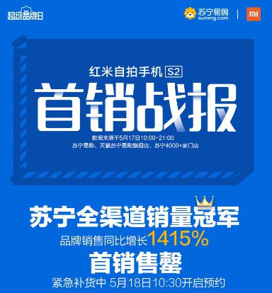 (图:红米S2在苏宁全渠道取得喜人战绩)