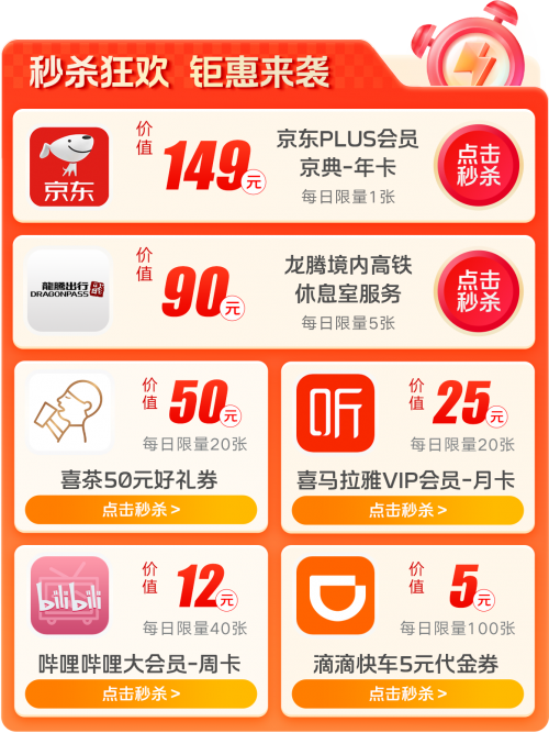 权益限时限量——11月20日-25日期间,每天12:00 限时秒杀!