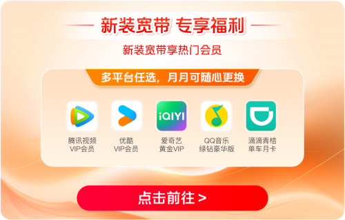 浙江联通为新装宽带用户提供专享福利!爱奇艺、腾讯视频、优酷、QQ音乐等多款热门会员任选,并支持每月随心更换,让你畅享高品质数字生活。