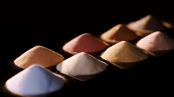 从表面装饰 → 材料进化: 彩砂经过煅烧与玻化,实现类似陶瓷釉面般的稳定性。它不再是一粒砂,而是一种「具备光泽、韧性与致密度的工程材料」。