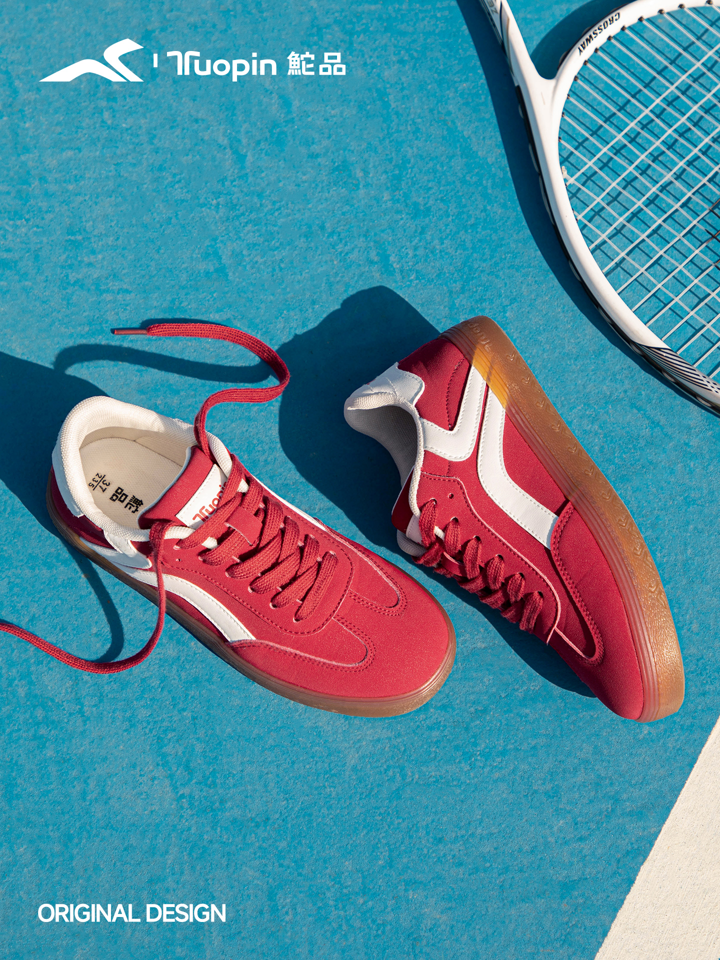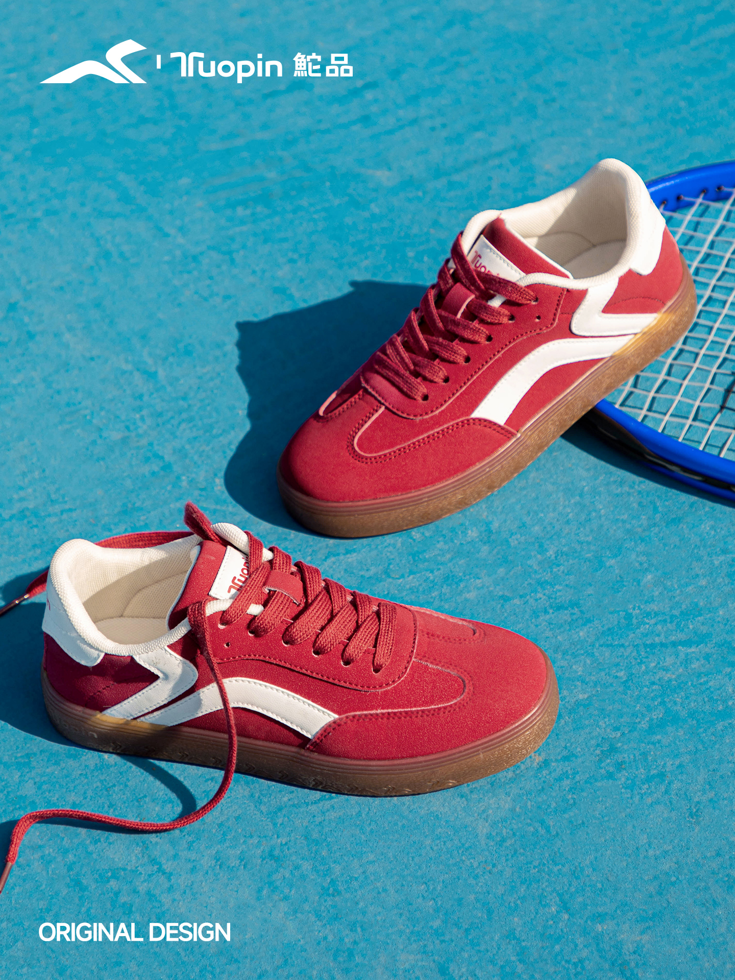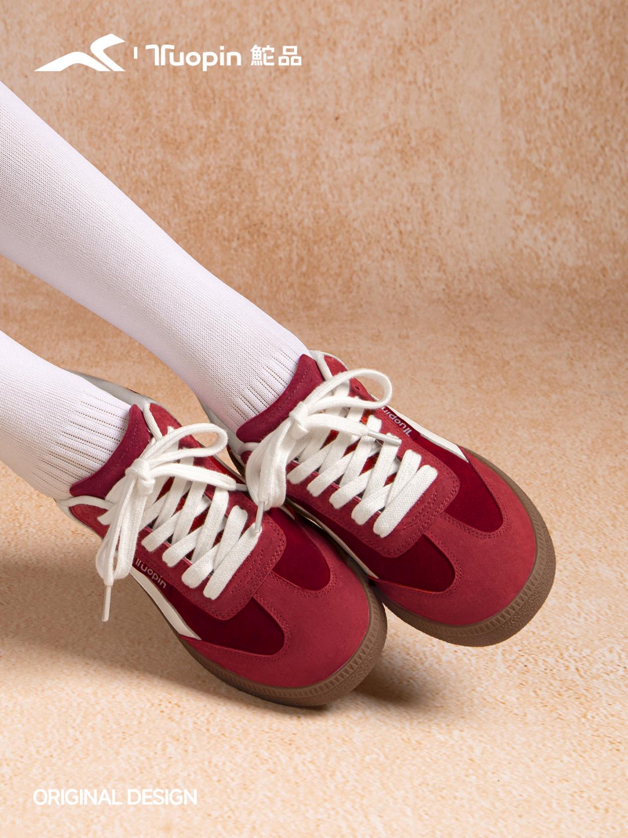 国货休闲品牌鮀品选择红色与暗红色作为主要色调,推出多款不同主题不同风格,鞋款类型也有所差异的产品:如原创设计苹果痛鞋,原创设计有钱花板鞋,原创设计基础德训鞋,原创设计升级复古德训鞋等;其多元审美收到消费者高度欢迎与肯定。