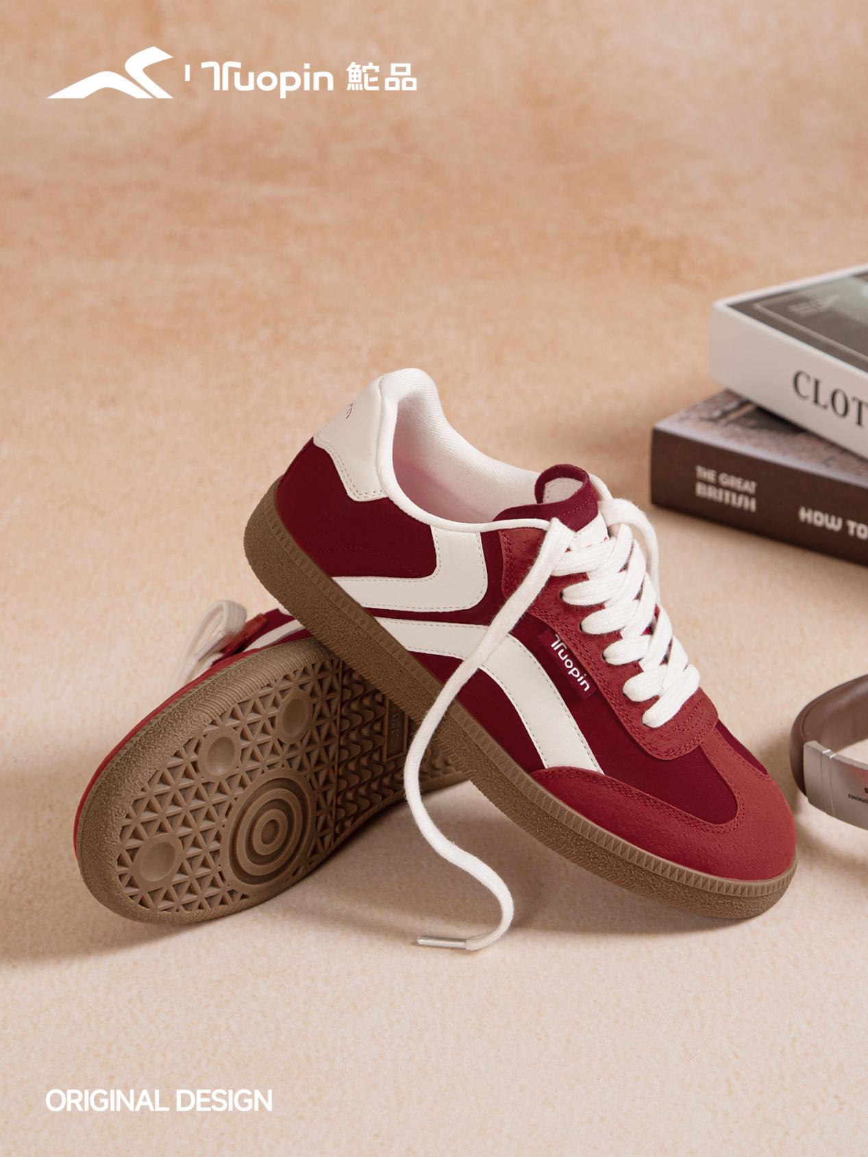 而鮀品原创设计基础德训鞋和原创设计升级款复古德训鞋则更适合追求鞋款穿着舒适性和适用场景更多的消费者。德训鞋型的穿着脚感会更加舒适,简洁大方的造型无论是在职场通勤中或是在日常休闲的情况下都能展现出非常合适的搭配;同时德训鞋的整体重量也相对较轻,即使是遇到需要久穿久走的情况,也不用太担心累脚的问题。