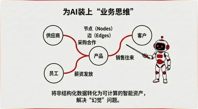 本次LOM的发布,就是以“定义边界、语义对齐、可追溯、可解释”为核心,为AI模型装上了“业务思维” 。LOM将企业的供应商、客户、产品、员工等实体定义为“节点”,将采购合作、薪资发放、销售往来等关系定义为“边”,把分散的结构化和非结构化数据转化为可计算、可推理的智能资产,从根本上解决了大模型的“幻觉”问题。