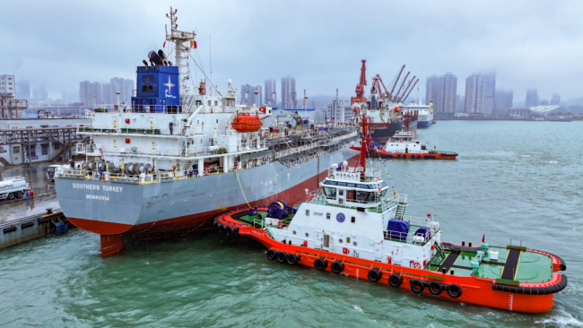 “‘云港电拖九号的投产运营,标志着我们纯电拖轮船队不仅在数量规模上达到国内外领先水平,更在智能化和技术性能上实现新的突破。” 连云港港口集团有限公司轮驳分公司总经理助理伯何表示,该轮的投入运营,是连云港港建设绿色港口的又一座新里程碑,不仅能有效降低港口运营成本,更能带来实实在在的碳减排效益,为港口绿色发展注入新动能。