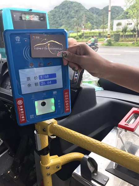 随着一声清脆的“嘀”声,一张印有“交通联合”标志的北京全国交通一卡通卡片在吉首1路公交车上刷卡成功啦!